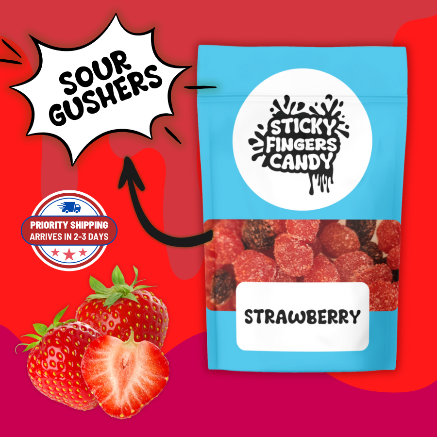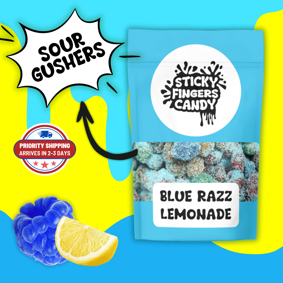 Introducing the Sour Gushers, the best TikTok Sour Blue Raspberry Gusher you'll ever taste! These gummies are available in different levels of sourness, allowing you to choose the perfect level of tangy flavor to suit your taste buds.